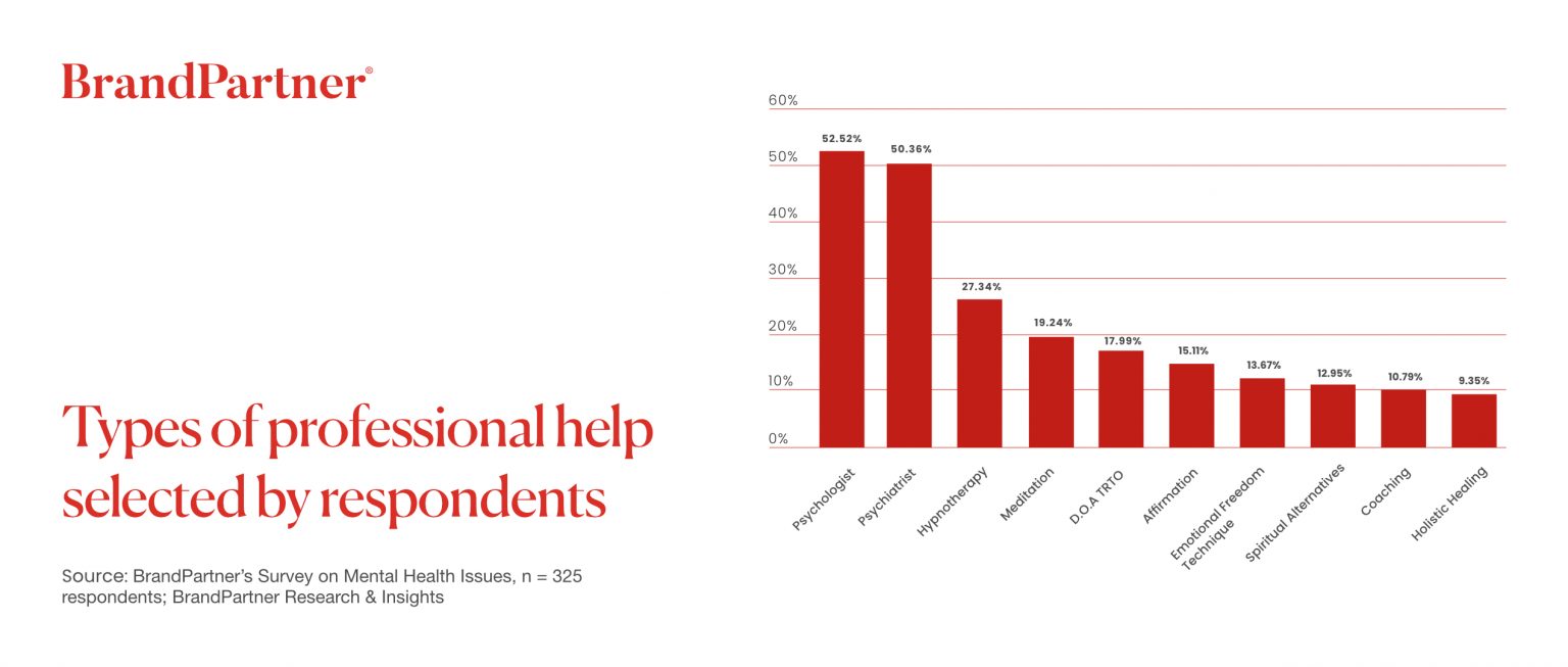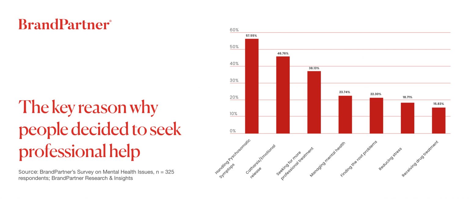 - BrandPartner’s latest research found out that, “57.55% of people with mental illnesses seek professional help for psychosomatic symptoms caused by mental factors.”
